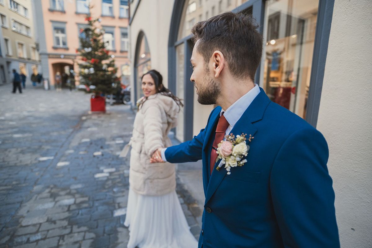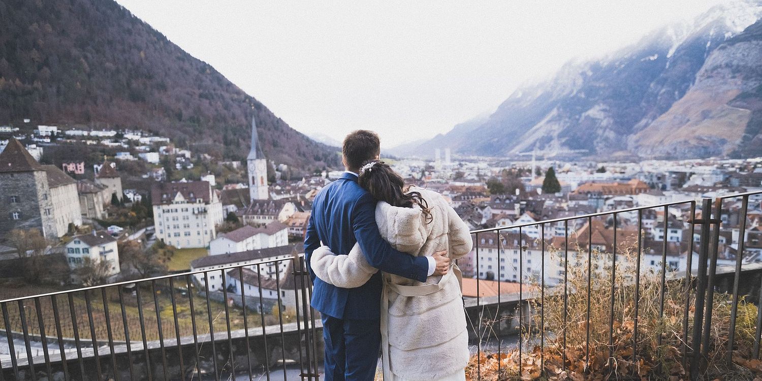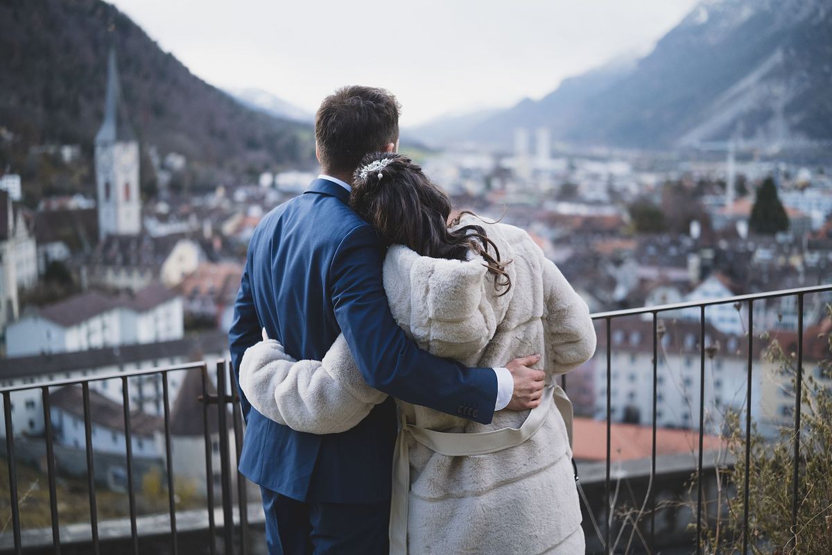 Eine Hochzeit im Winter kann schön, romantisch und erwärmend sein, auch in Chur und auch ohne Schnee und mit grauem Himmel.
