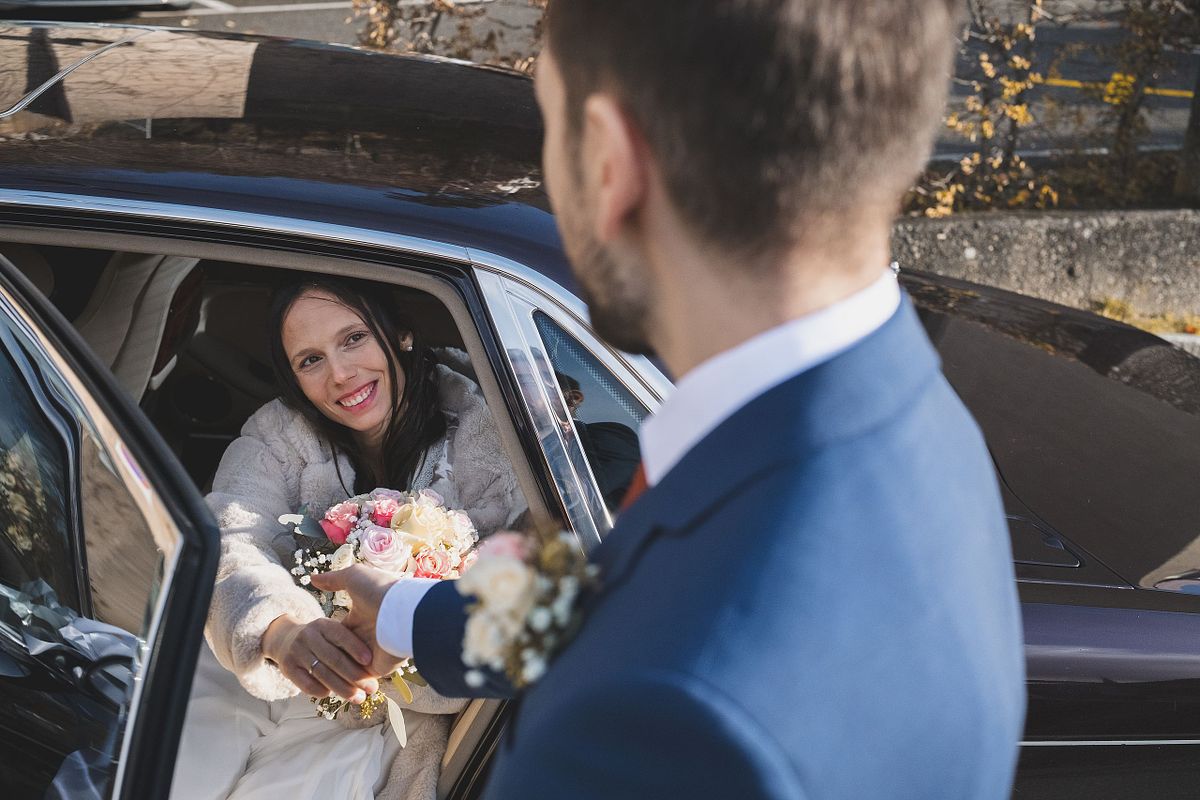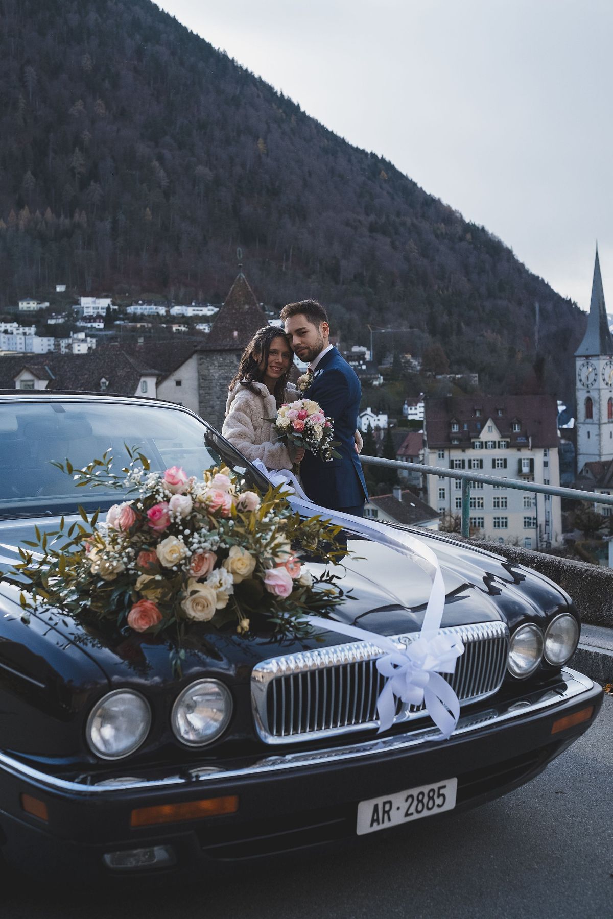 Wenige Tage vor der Hochzeit wurde ich dennoch nervös. Kalt und nass soll es werden am Tag der Tage für das Brautpaar. Mit der Trauzeugin habe ich noch das Shooting mit dem extra organisierten Jaguar (nicht das Tier) besprochen, die Location mit Blick über Chur war schon abgemacht. Kurz darauf organisierte das Brautpaar, nichtwissend, dass ein Auto mit im Spiel sein wird, einen Torkel fürs Paar-Shooting. Wie kriege ich es hin, dass wir dennoch ein Auto-Paar-Fotoshooting (für mich als Auto- und Hochzeitsfotograf die Traumkombination) hinbekommen? Die Zeit fürs Shooting war ohnehin etwas knapp bemessen. Ich musste mit dem schlimmsten rechnen - kein Shooting draussen.