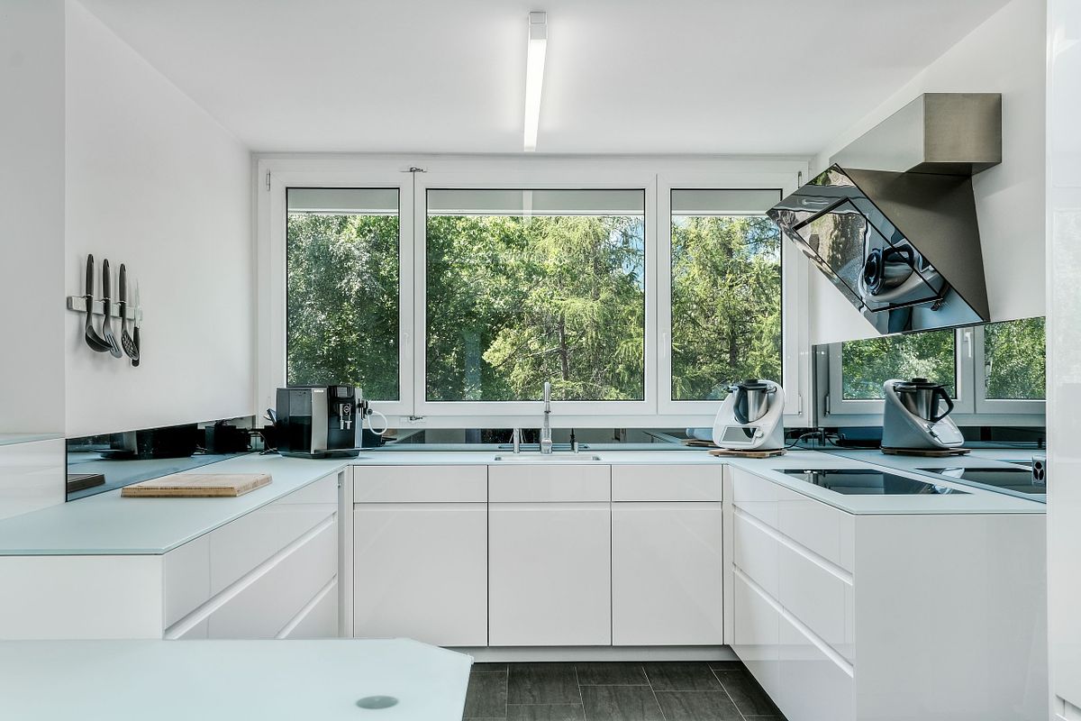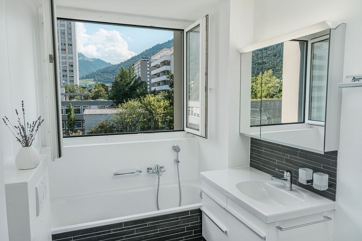Diese Churer Wohnung aus den 60ern wurde aufwendig renoviert. Sie hat einen schlichten und modernen Stil, bietet viel Raum und besticht durch durch den natürlichen Lichteinfall.